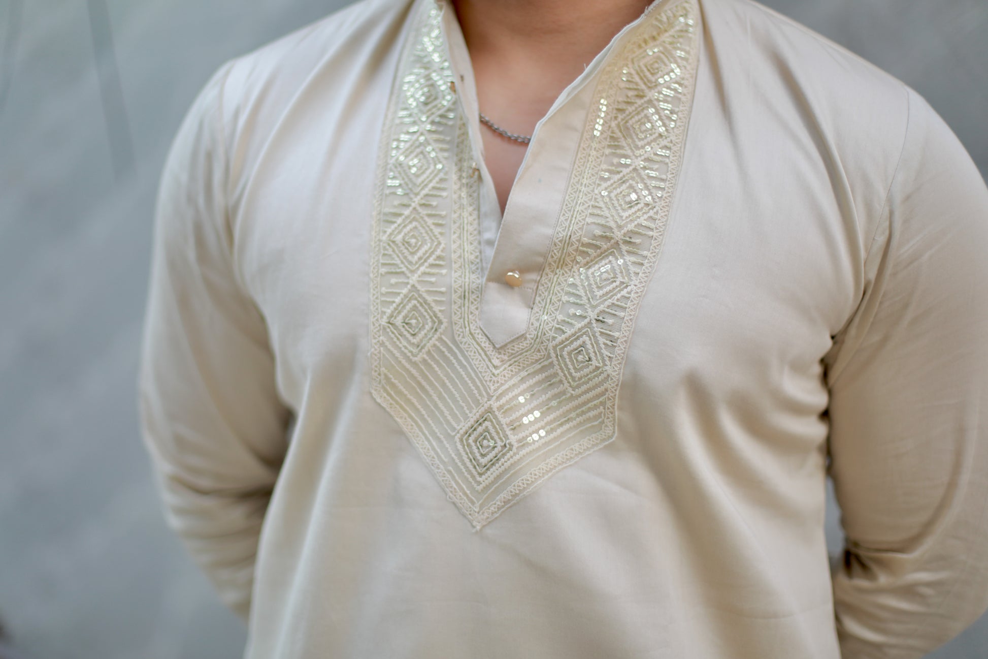 4. Occasions: A beige kurta pyjama set can be worn for weddings, festivals, or family gatherings.