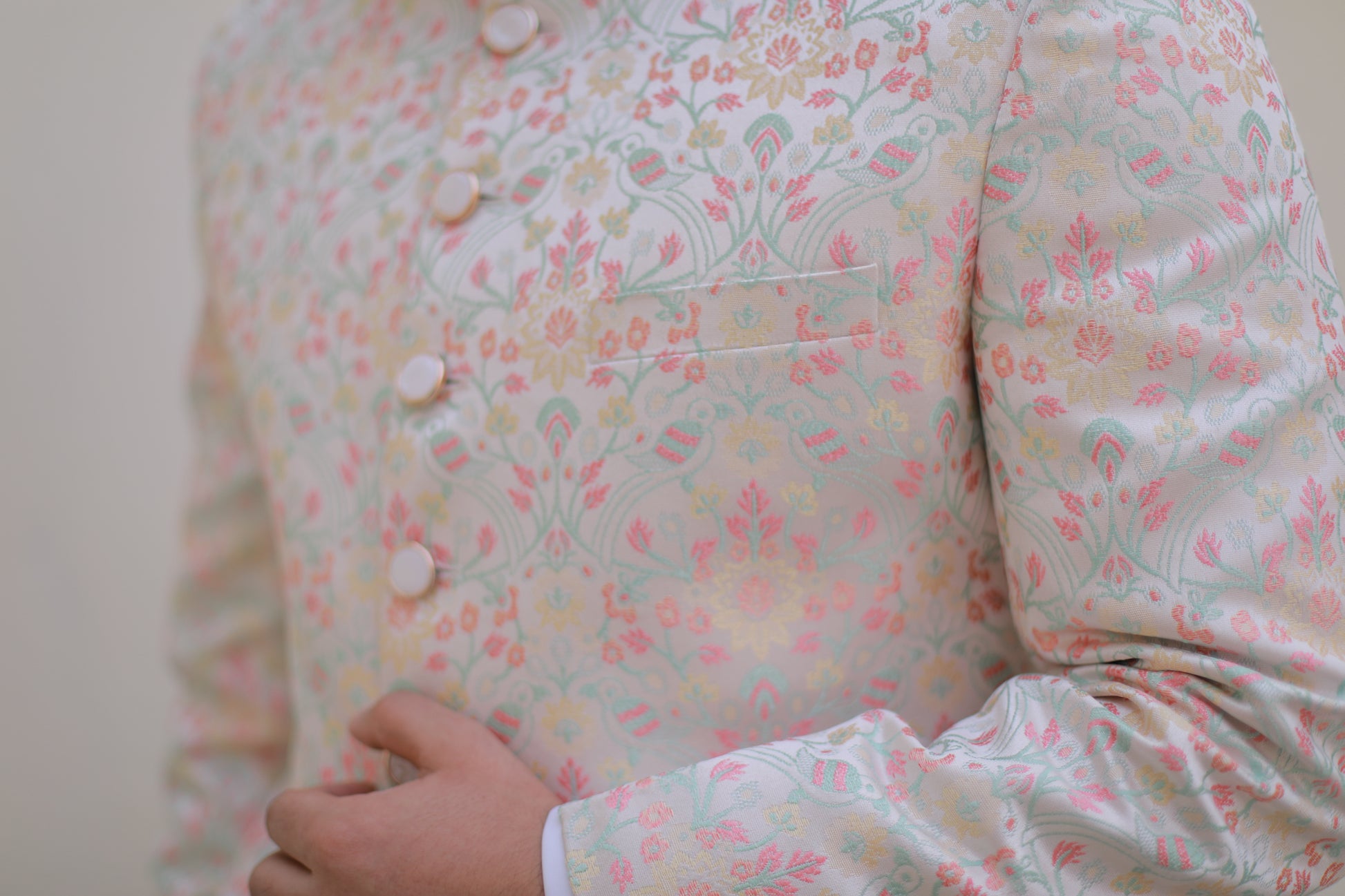 Sherwanis are usually paired with churidar, dhoti, or straight-cut trousers and are complemented with accessories like a turban, mojari shoes, and a brooch for a complete royal look.