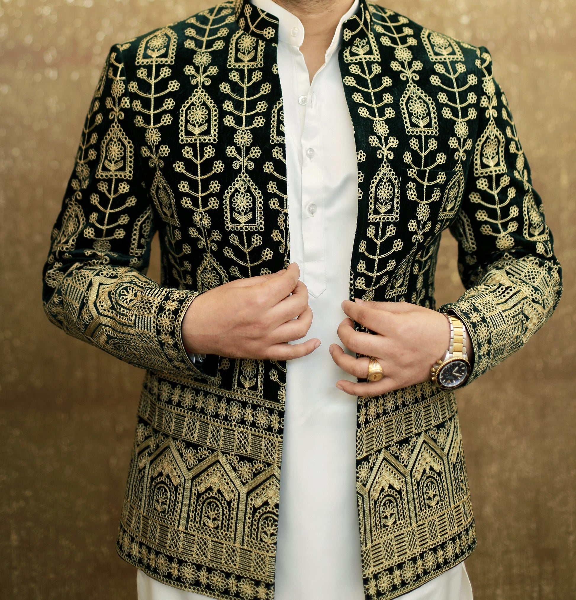 - If the jacket has elaborate gold or silver embroidery, it's ideal for formal events like weddings, gala dinners, or any event where you want to stand out while maintaining a classy, regal air.