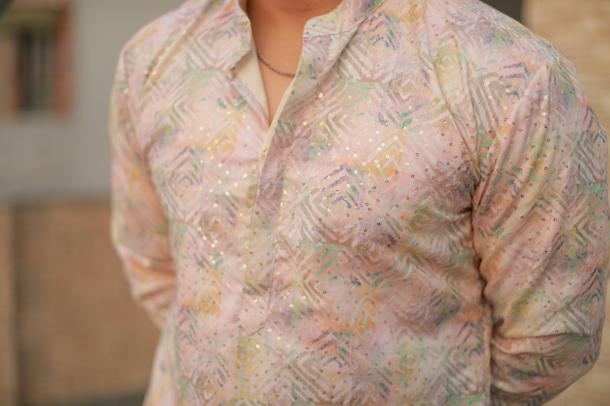 A multi-color kurta paired with a white salwar is a great combination, offering a vibrant and fresh look. The kurta could feature a mix of patterns or colors, such as traditional motifs, geometric shapes, or a block-color design, which stands out. A white salwar keeps the outfit balanced and complements the bright colors of the kurta. This style works well for casual events, festivals, or even semi-formal occasions.